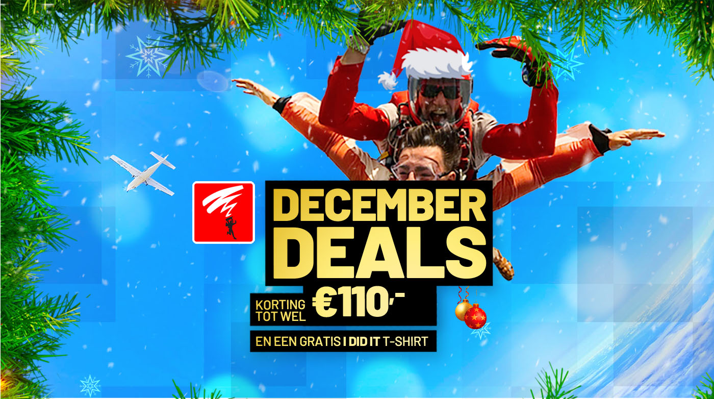 Dit jaar zijn de cadeaubonnen, giftboxen en gewone boekingen (voor als je al een springdatum in gedachten hebt) de hele maand december in de aanbieding! Hieronder lees je er meer over.