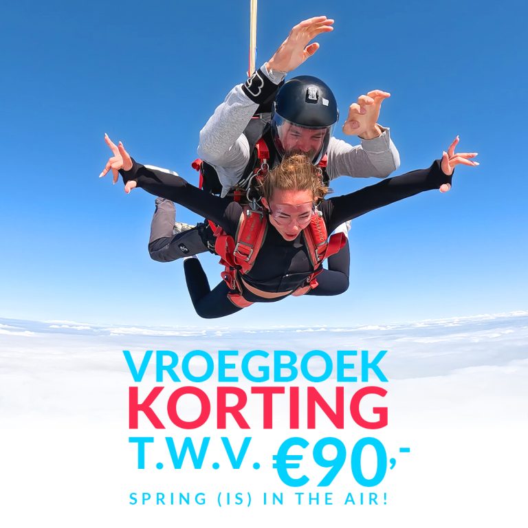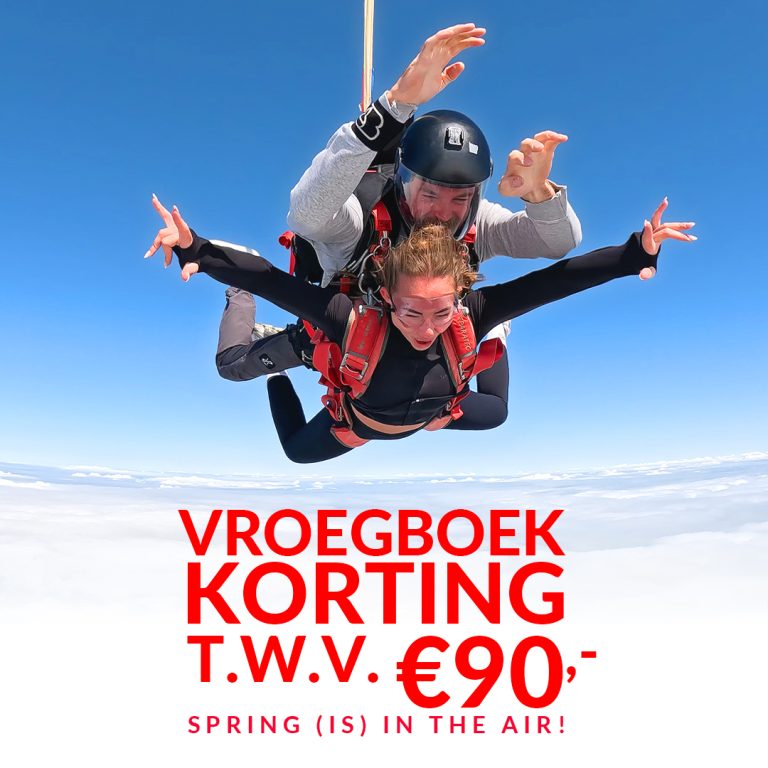 Boek een sprong naar 13.000ft en gebruik onderstaande kortingscode om €90,- korting te krijgen!